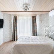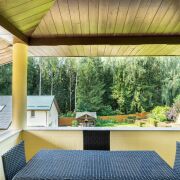 - 3 спальни, все оборудованы кондиционерами. Мастер-спальня с большой гардеробной. Из всех комнат вид на лес. Отопление – радиаторное