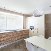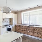- Просторная Кухня 14,5 м2 со встроенной функциональной бытовой техникой «Bosсh», с удобной кухонной мебелью + огромное окно с видом на лес