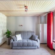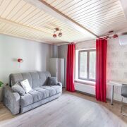 - Гостиная 47,5м2 с камином и мебелью и прямым выходом на террасу