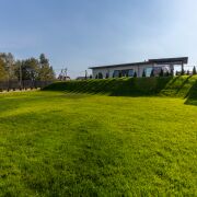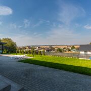 На участке установлена система автоматического полива газона.