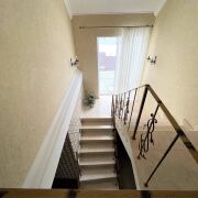 С первого на второй этаж ведёт мраморная лестница с кованными перилами.