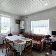 Двухуровневый дом 2010г.п. с цокольным этажом общей площадью 281 кв.м, два жилых этажа площадью 184 кв.м. На 1-м отапливаемом этаже четыре мебелированные небольшие спальни, гостиная, санузел с душевой и теплым полом под плитку, а также просторная светлая с большими окнами кухня, на которой кроме кухонной мебели есть электроплита с духовкой, холодильник, обеденный стол и диванчик.