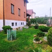 Участок 15 соток, полностью огорожен и распланирован, много красивых насаждений (туи, ели, газон).