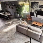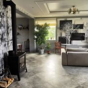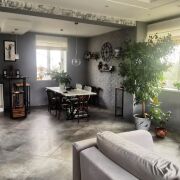 Кухня - гостиная 63 кв.м., кабинет 7,7 кв.м., санузел, прихожая со встроенным шкафом-купе. По всему этажу водяной подогрев пола (половая плитка керамогранит). Окна ПВХ. Камин-топка. Кухня со встроенной бытовой техникой: варочная панель (газ), духовой шкаф, посудомоечная машина. Высота потолка - 3,01м. Гараж (29,5 кв.м.) с роллетными воротами. Отдельный вход в дом и цокольный этаж.