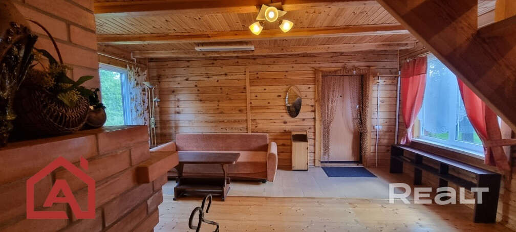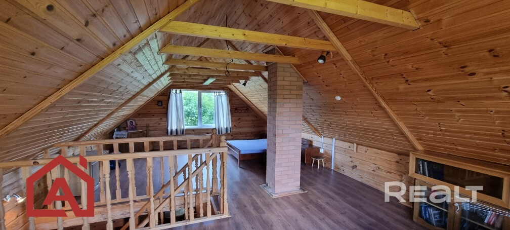 Дом выполнен из качественного бруса, что придает ему особый шарм и уют. На первом этаже вас встретит уютная гостиная с камином, просторная кухня и санузел, создающие идеальное пространство для отдыха и комфортной жизни. Второй этаж представляет собой общее пространство, которое легко можно разделить на две отдельные комнаты по вашему желанию. Дом находится в идеальном состоянии, использовался только во время летних отпусков. Для обеспечения тепла в доме имеются камин и инфракрасные лампы, но также имеется возможность установить электрическое отопление для круглогодичного проживания.