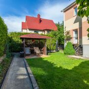 Участок 9 соток, ровный, пологий, c молодым садом, ягодными и декоративными растениями. Участок огорожен стационарным забором, и с двух сторон забором из туй высотой 3-4м.