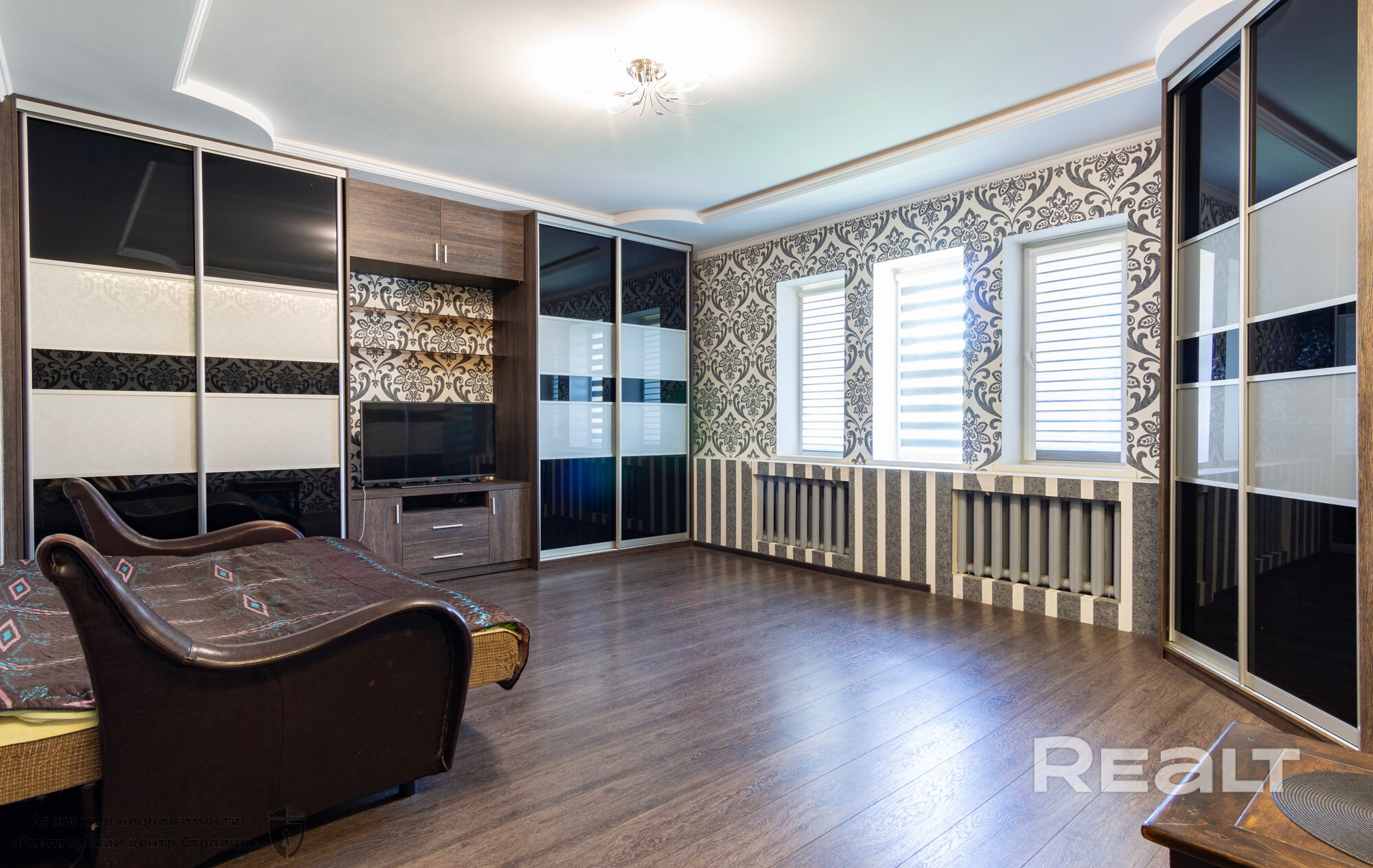 Дом состоит из трех уровней и включает в себя пять просторных меблированных комнат, 18-метровую кухню, оборудованную всем необходимым для приготовления пищи и приятного времяпровождения с семьёй или друзьями, две застекленных лоджии 12 и 5 м2, два с/у, расположенных на первом и втором этажах. В просторном подвальном помещении оборудована только топочная, остальные 80 м2 могут быть использованы для обустройства бани, спортзала, бильярдной, мастерской или по вашему усмотрению.