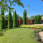 На территории выполнен ландшафтный дизайн. Засажены декоративные деревья и кустарники, плодоносящий сад, газон с подсветкой оборудована автоматическая система полива газона.