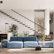 За концепцию дома, был взят минимализм, уникальность и динамическая архитектура. Идеальный баланс между простором и полезной площадью, заметен в каждом помещении и в каждой комнате.
