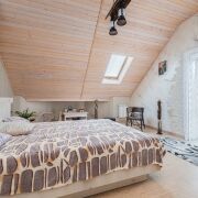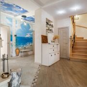 На 2-м этаже расположены три светлые изолированные комнаты, в одной из спален расположен кондиционер. Во всех комнатах полы из пробки. На стене фреска с эффектом старения. На 2-м этаже совмещенная ванная комната с санузлом оснащена душевой кабиной. Рядом с ванной комнатой размещена гардеробная. Небольшой балкон ограждён кованным ограждением.