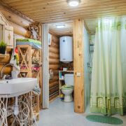 Гостевой домик: баня с соляным источником и теплыми полами, санузел, терраса с возможностью консервации на зиму. Так же в гостевом домике имеется мягкая мебель, холодильник, микроволновка, водонагреватель, электроплитка, электропечь, предметы времен СССР.