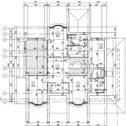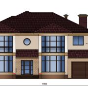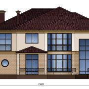 Дом в 2 этажа. Гостиная – 38м, столовая – 25м, кухня – 21м, холл – 23м, кабинет – 22м, гостевая – 22м, есть тамбур, топочная и постирочная, 4 жилых комнаты, 3 санузла, 2 гардеробных. На первом этаже расположена терраса – 15м.