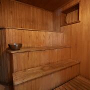 В цокольном этаже находится сауна с мини-бассейном и комнатой отдыха.