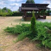 На участке общей площадью 25 соток расположена крытая беседка для большой компании. Участок засажен молодыми яблонями, около дома красивая ландшафтная зона. Ограждение участка из металлопрофиля.