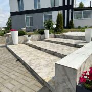 На этой огромной территории реализован ландшафтный дизайн проект в едином стиле с архитектурой дома.