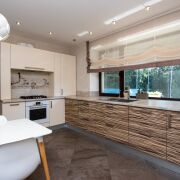 - Просторная Кухня 14,5 м2 со встроенной функциональной бытовой техникой «Bosсh», с удобной кухонной мебелью + огромное окно с видом на лес