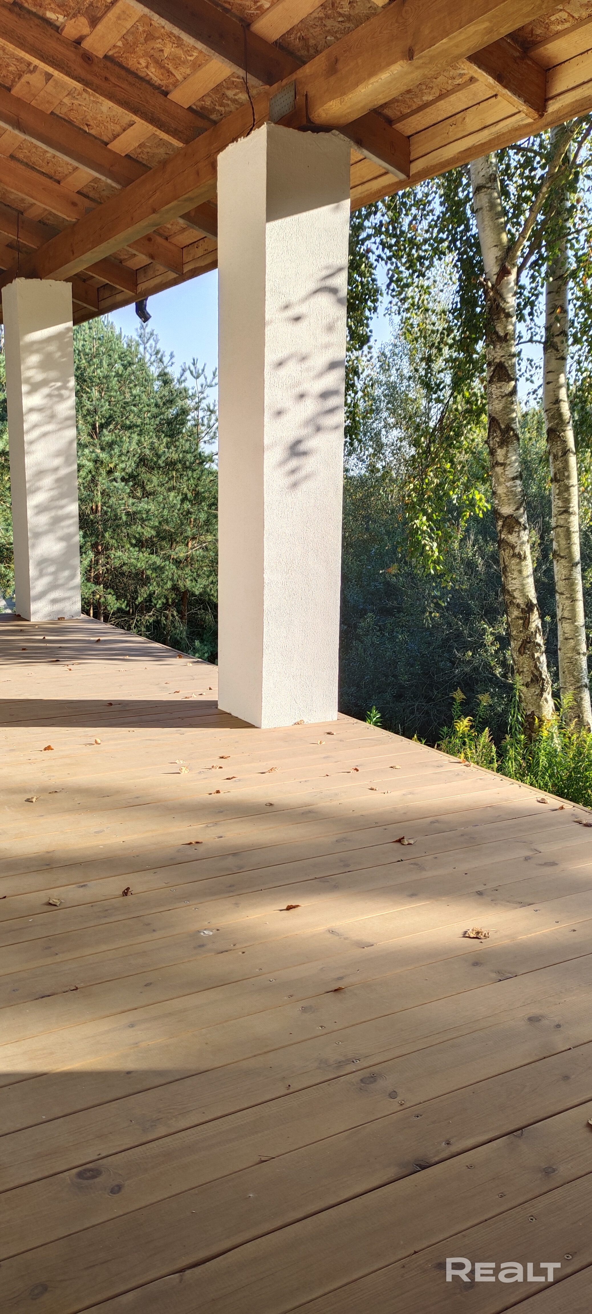 Современный коттедж с великолепным видом на Дубровское водохранилище в лесном массиве. Закрытый коттеджный поселок с/т Багута-2. Участок 10 соток с красивым ландшафтом. Фундамент ленточный на сваях, залит армированной монолитной плитой. Стены из керамзитно-бетонных блоков 40 см плюс утеплитель 5 см. Перекрытие 1-го этажа монолитное бетонное, крыша - мягкая черепица. Дом готов под чистовую отделку. Внутри оштукатурен. По дому разведено электричество,сантехника(теплый пол),водоснабжение.