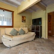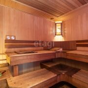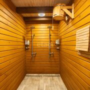 Банный комплекс построен из клееного бруса общей площадью 125 кв.м.. Состоит из сауны (парная), отделка из дорогих сортов древесины, липа сохраняет чудесный запах и цвет, которые не изменяются длительное время. Потолок изготовлен из Канадского кедра. Канадский кедр, содержит в себе довольно много эфирных масел, которые дают неповторимый и стойкий аромат в помещении парной. Парная на дровах, печь Везувий с паровой пушкой.