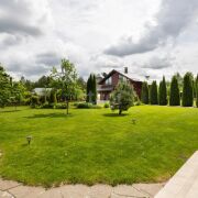 Шикарный банкетный зал с кухней и камином барбекю, конструкция камина позволяет жарить шашлык на углях и другие блюда на огне в казане, при этом находясь в закрытом помещении, что особенно ценно в холодное время года. Вместимость банкетного зала составляет до 20 персон, в банкетном зале панорамные окна с видом на ландшафтный участок, с непередаваемой красотой. Так же имеется вторая зона барбекю на открытом участке рядом с выходом к купальному пруду. Пруд купальный, чистый, проточный родниковый, зарыблен (карп, карась).