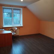 Первый этаж: прихожая, каминный зал, кухня, кабинет, санузел. Второй этаж: три спальни, гардероб, санузел. Высота потолков: цоколь 2,25м, первый этаж 3м, второй этаж 2,5м.Гараж на 2 машины в цокольном этаже, баня, вольер. Участок – 11,7 соток, угловой, правильной прямоугольной формы. Соседи с одной стороны. Огорожен забором, два въезда на территорию. Агентам без покупателя не звонить. Возможен обмен.