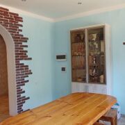 Имеется помещение приспособленное для деревообработки и столярной мастерской с высотой потолка 4 м (заведена вода, окна - стеклопакеты). На участке есть кирпичные хоз. постройки, предназначены для ведения хозяйства.