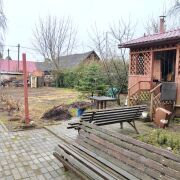 Участок 8 соток, правильной формы, на котором расположены просторная баня с парилкой и комнатой отдыха, утепленный сарай, беседка. По периметру дома уложена тротуарная плитка. Посажены плодовые деревья, различные кустарники, цветы.