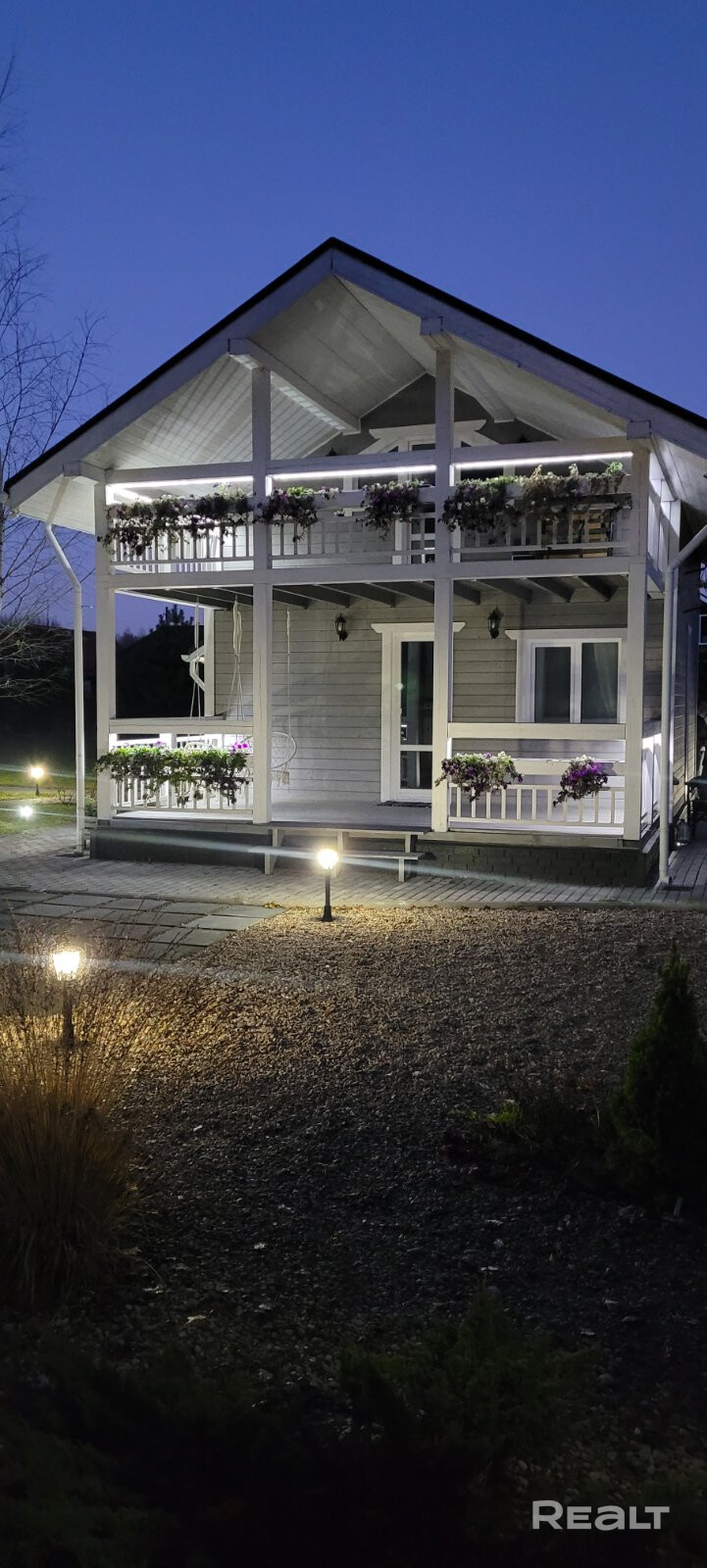 Изюминкой дома является его расположение, из окон можно наблюдать не только ухоженную территорию участка, но и шикарный хвойный (лиственной лес), слушать пение птиц, завтракая на веранде (есть нижняя и на 2 этаже). Ночью приятно удивит красивое освещение всего участка (регулируется по желанию с пульта) и подсветка дома.