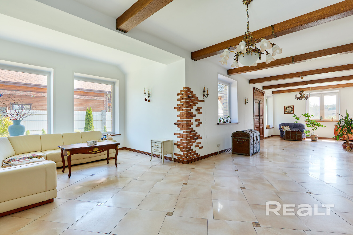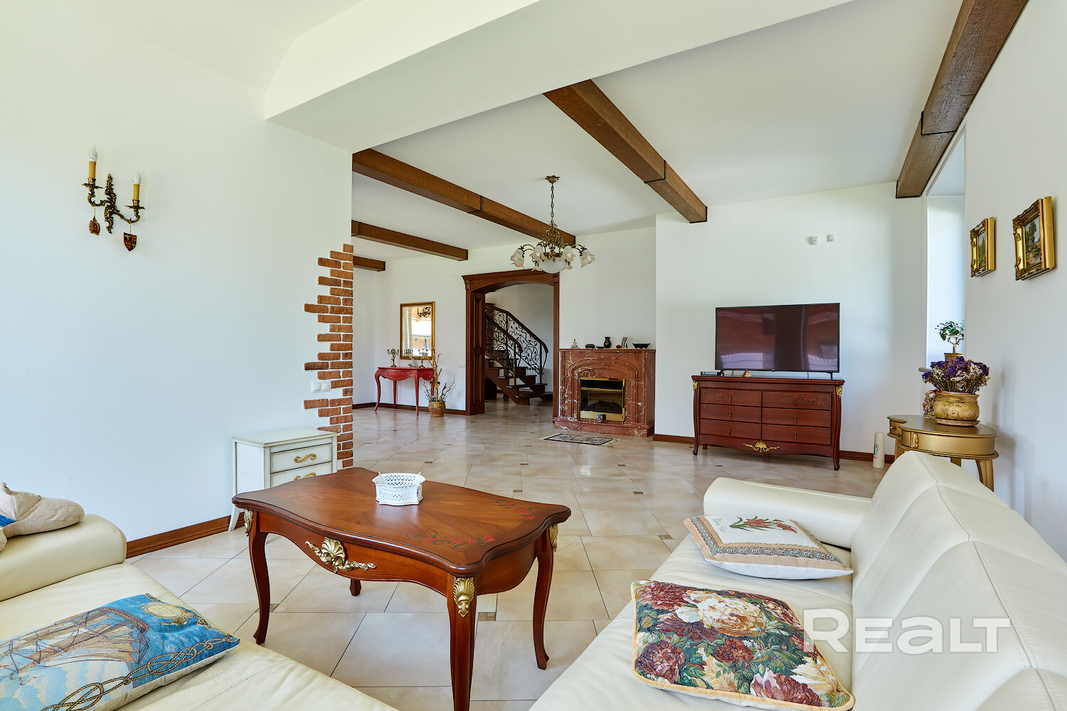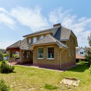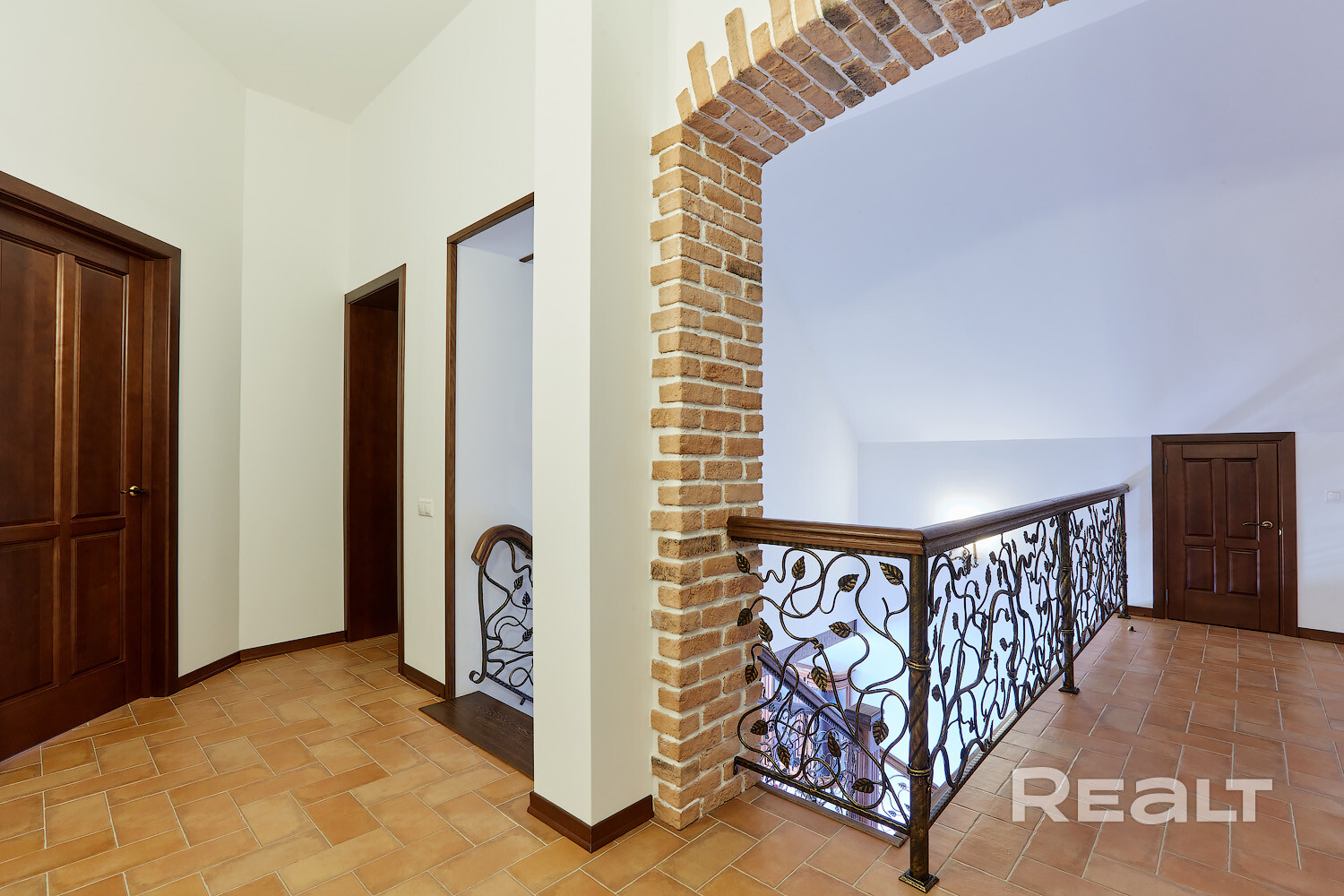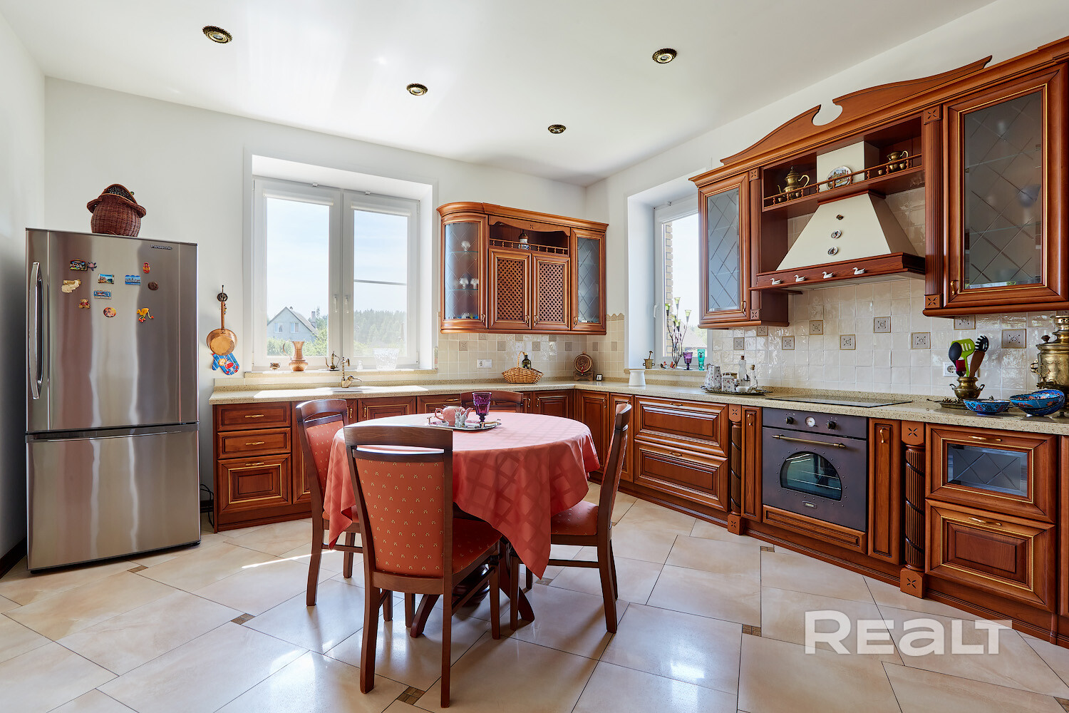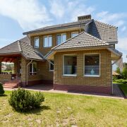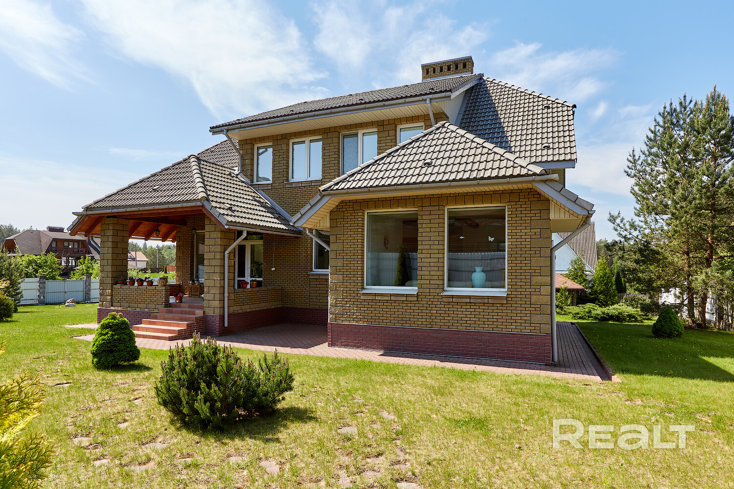 Дом 2012 года постройки, 2 уровня, стены – кирпич обложенный бессером, крыша – черепица, площадь 245 м2. Отделка класса люкс – в отделке использованы ценные породы дерева, испанская плитка со вставками из натурального камня, лестница из ясеня с декоративной ковкой ручной работы, импортная сантехника, тёплый пол на первом этаже и в санузлах. Планировочные решения продуманы до мелочей и выполнены для максимального сохранения свободного пространства, уюта и индивидуальности. На первом этаже размещается просторная кухня, совмещенная с гостиной, кабинет и котельная. На втором этаже размещены 3 просторные спальни, 2 санузла и 2 гардеробные комнаты. Навес на 2 машины, небольшой хозблок для садового инвентаря. Телефон, интернет, дом находится под охраной.