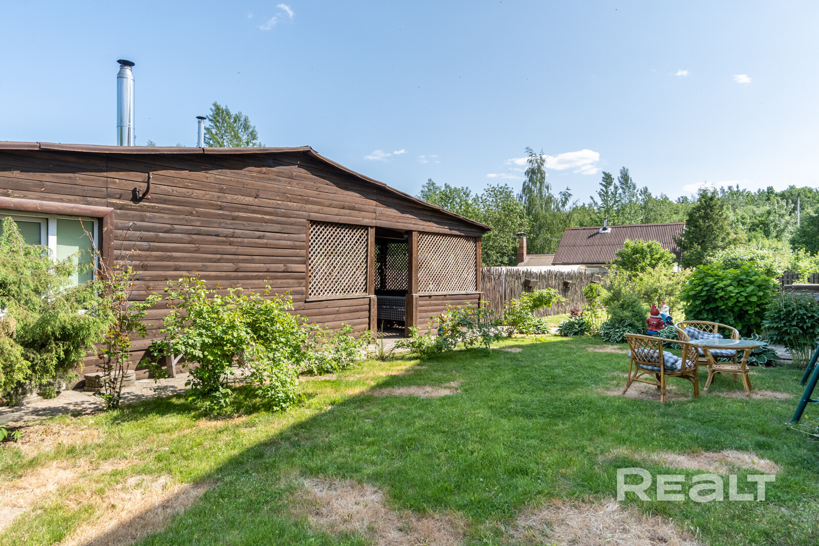 Участок выровнен, ухожен и имеет интересный ландшафтный дизайн.