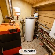 В зоне прихожей имеются хоз. комната и кладовая. Два котла: твердотопливный TIS с автоматикой (25 кВт), электрокотел Протерма (12 кВт), котел для нагрева воды, подготовлен вывод на солнечные панели.