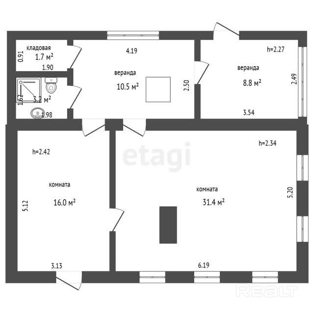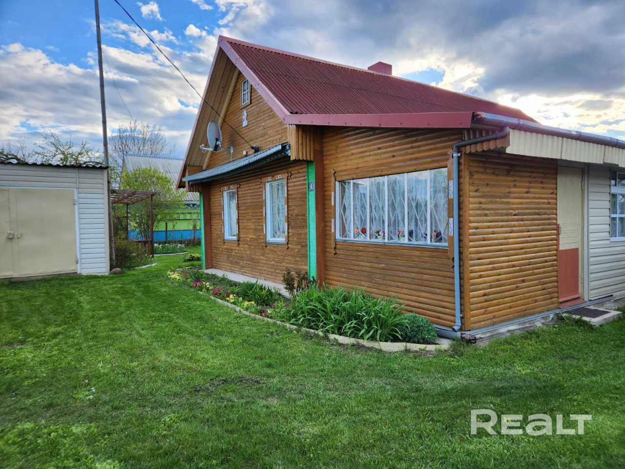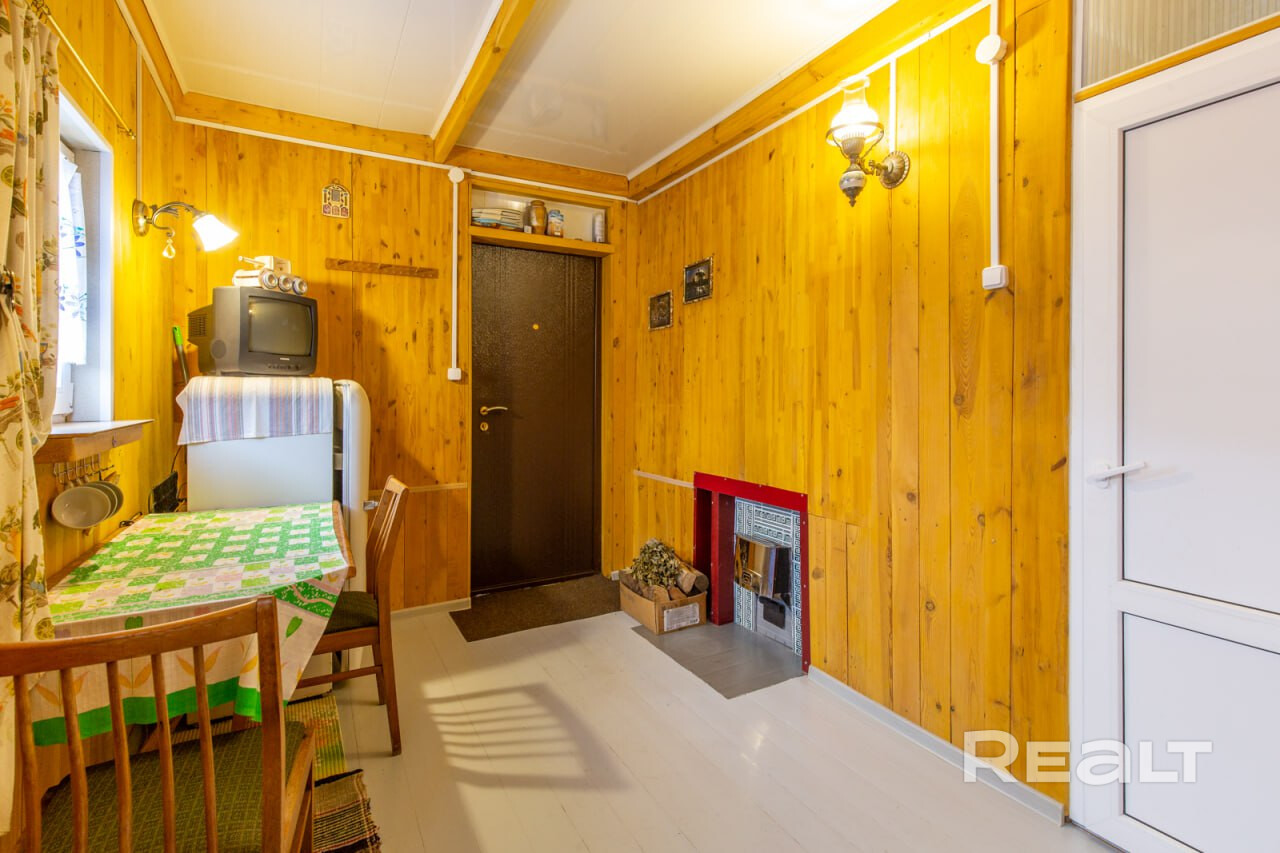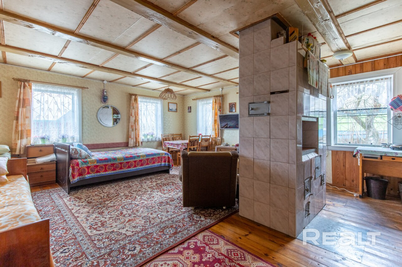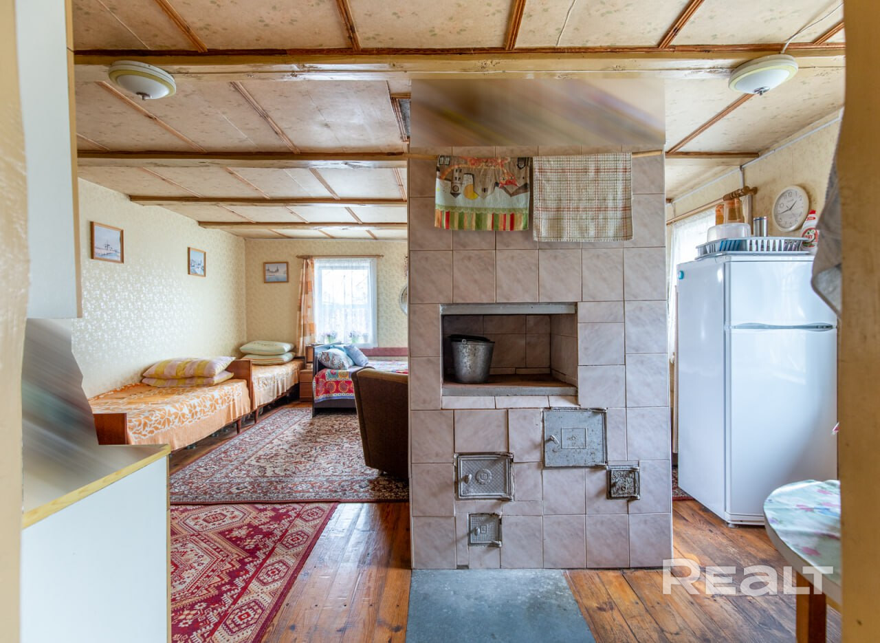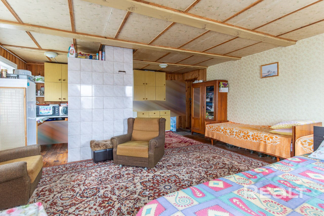 Сам дом представляет собой деревянную постройку общей площадью 71,6 кв.м, с уютной жилой комнатой в 31,4 кв.м, двумя верандами и летней комнатой. Деревянные стеклопакеты, печное отопление, для готовки – дополнительная электроплитка, имеется отличный погреб. Вода – собственная скважина, заведена в дом. В с\у установлена ванна, подключен бойлер и насос. Туалет – септик, на улице. Отличная связь А1, подключено спутниковое телевиденье с многочисленными каналами. Дом оформлен как жилой, можно прописаться.