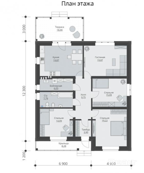 Строящийся одноэтажный современный дом в районе Заславля в СТ Союз-2» представляет собой идеальное сочетание комфорта и стиля. Этот дом спроектирован с учетом последних архитектурных тенденций и экологических стандартов, он станет идеальным местом для жизни, сочетая в себе современный комфорт и уют загородной жизни.
