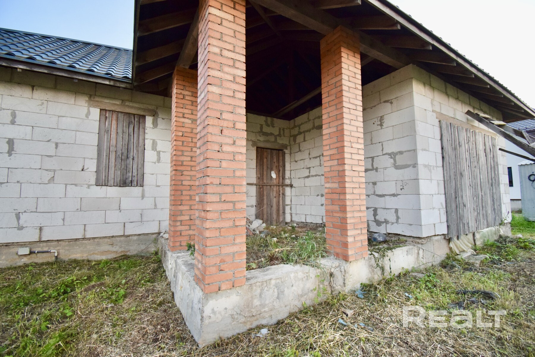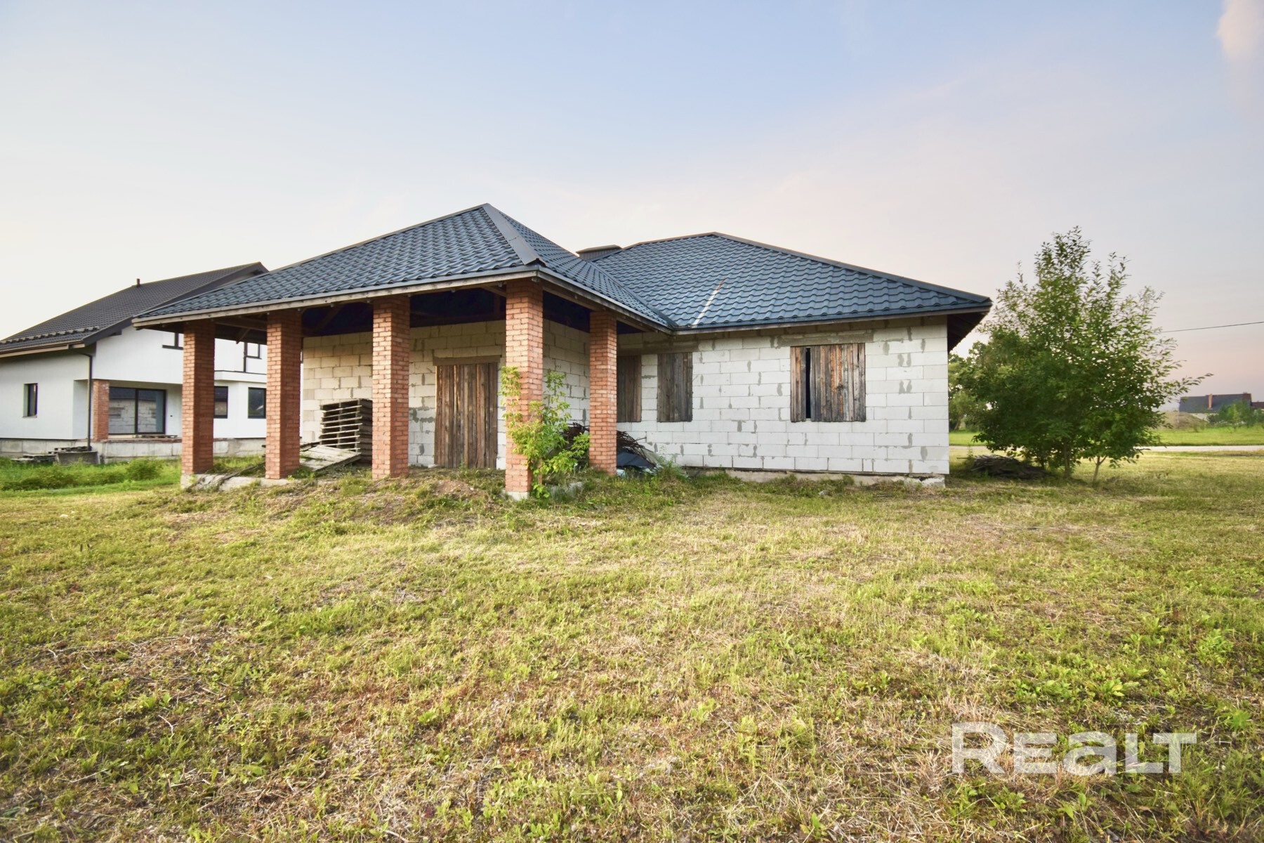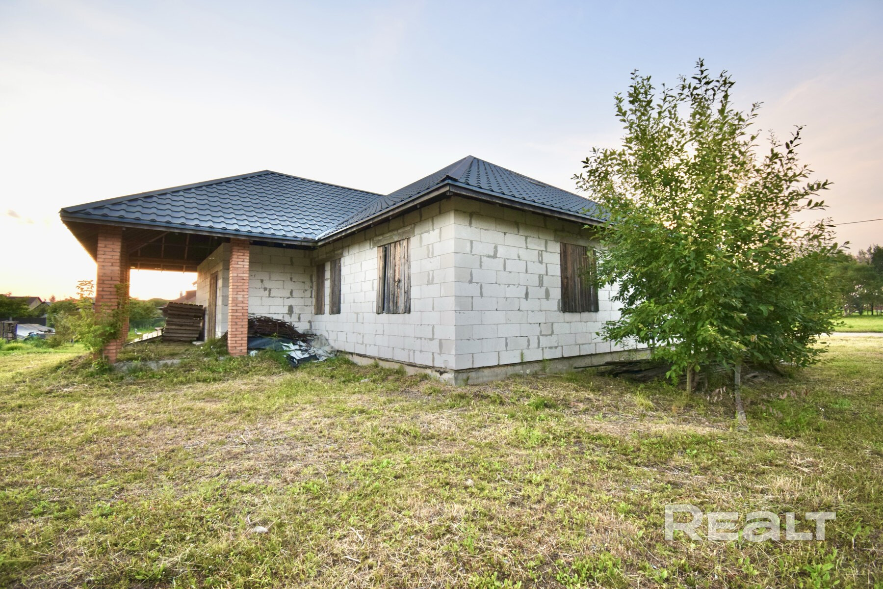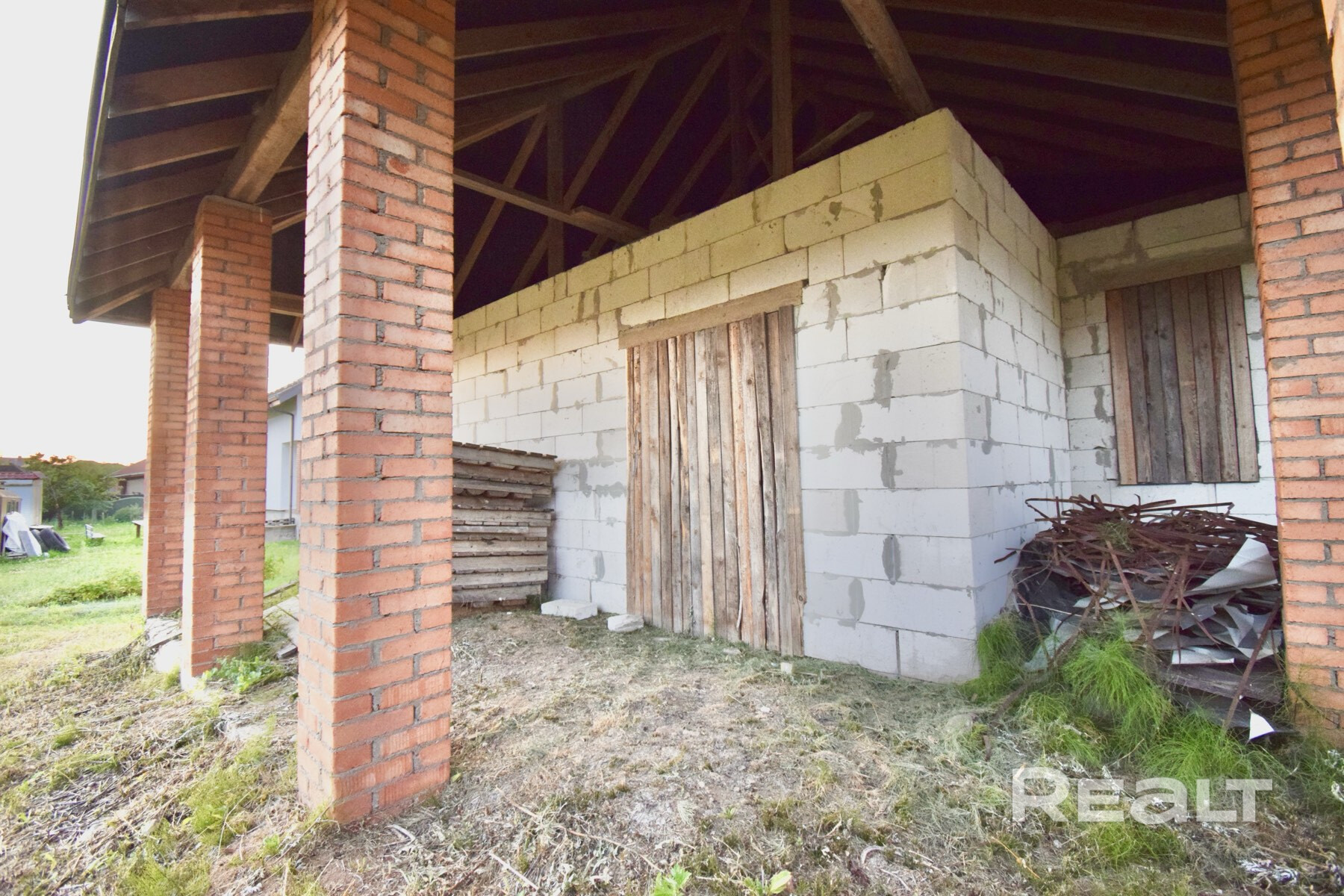 Дом (незавершенное капитальное строение) площадью 230м2 одноэтажный, полностью возведены стены (силикатные блоки), крыша накрыта металлочерепицей, отсыпан песчаный пол, сохранены строительные материалы.