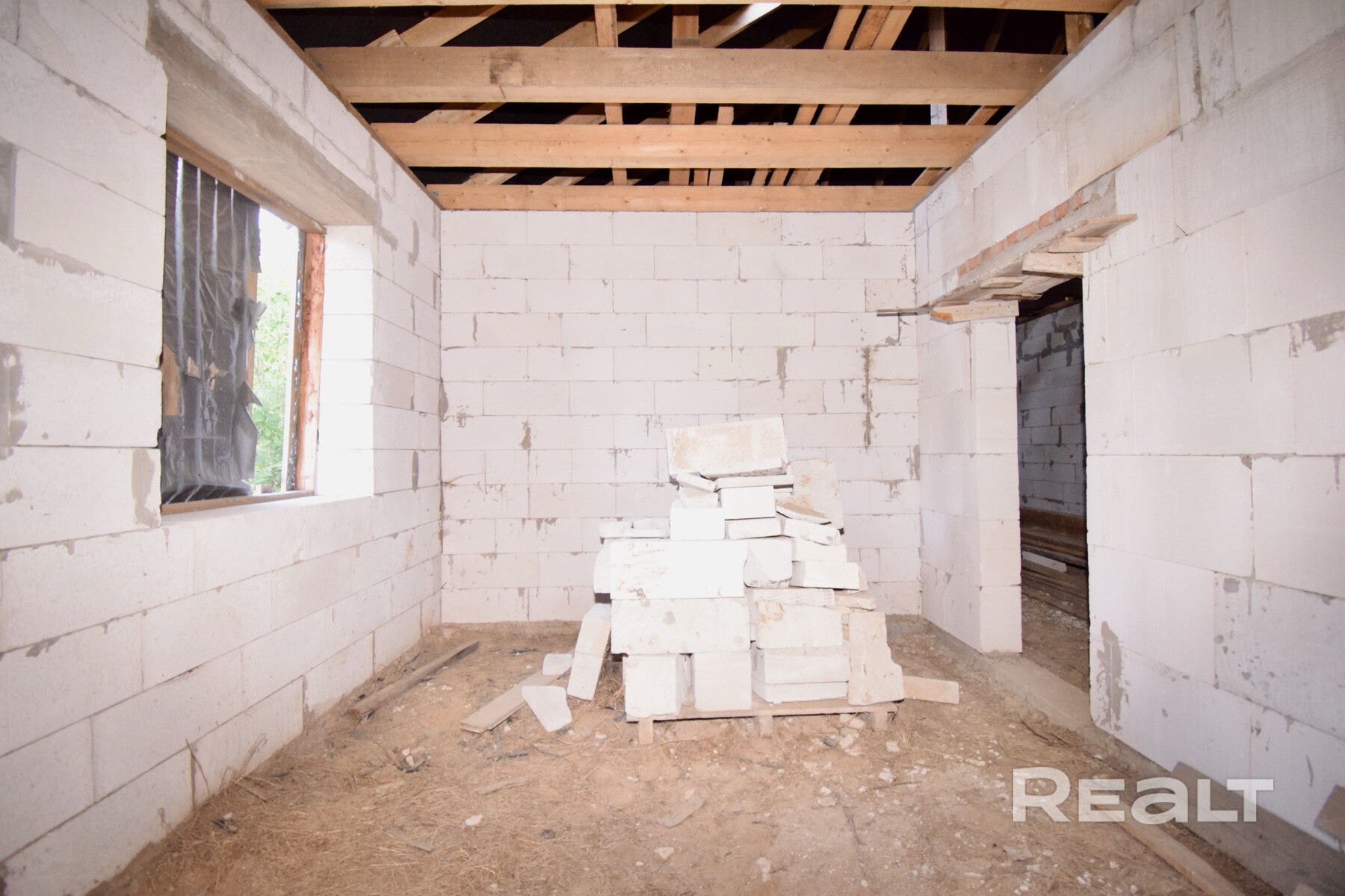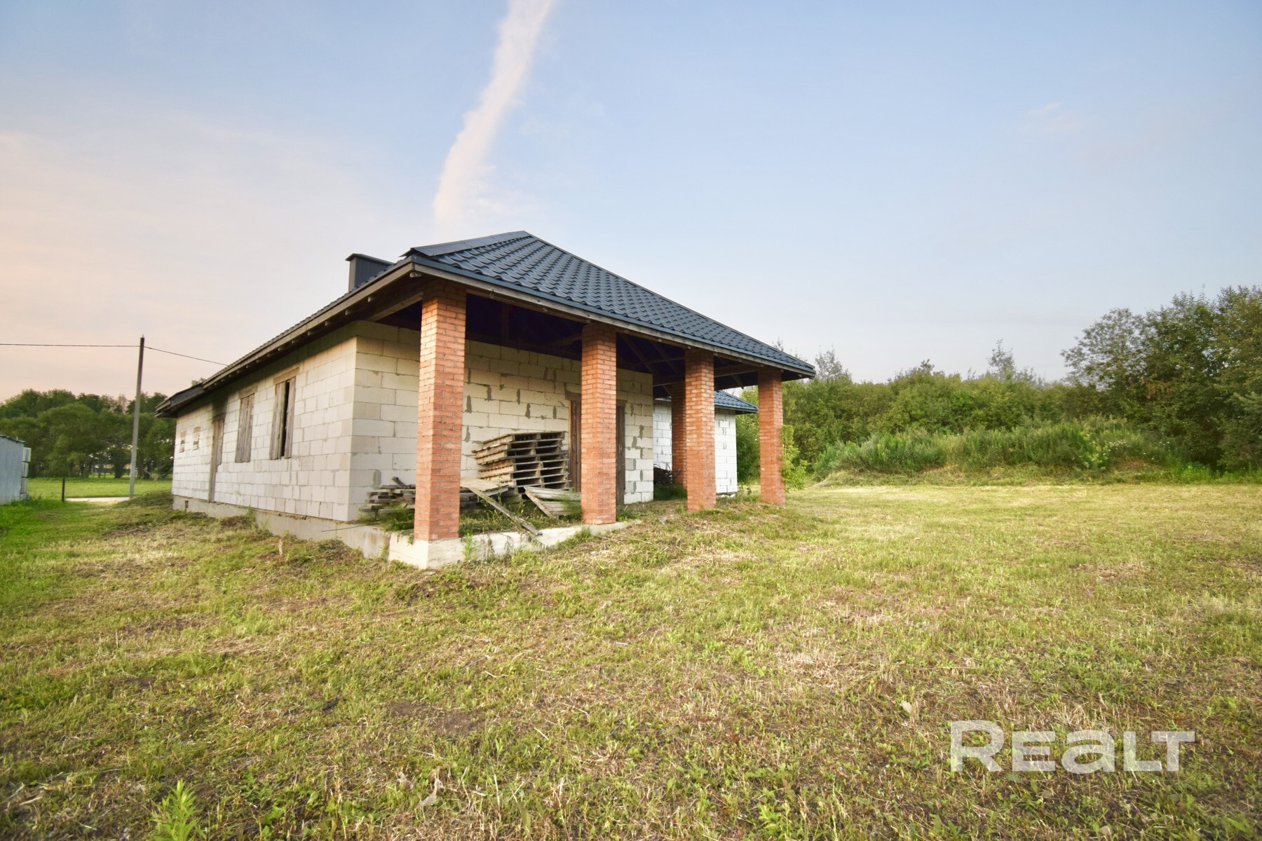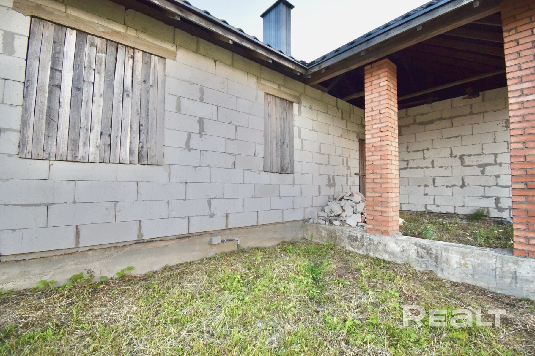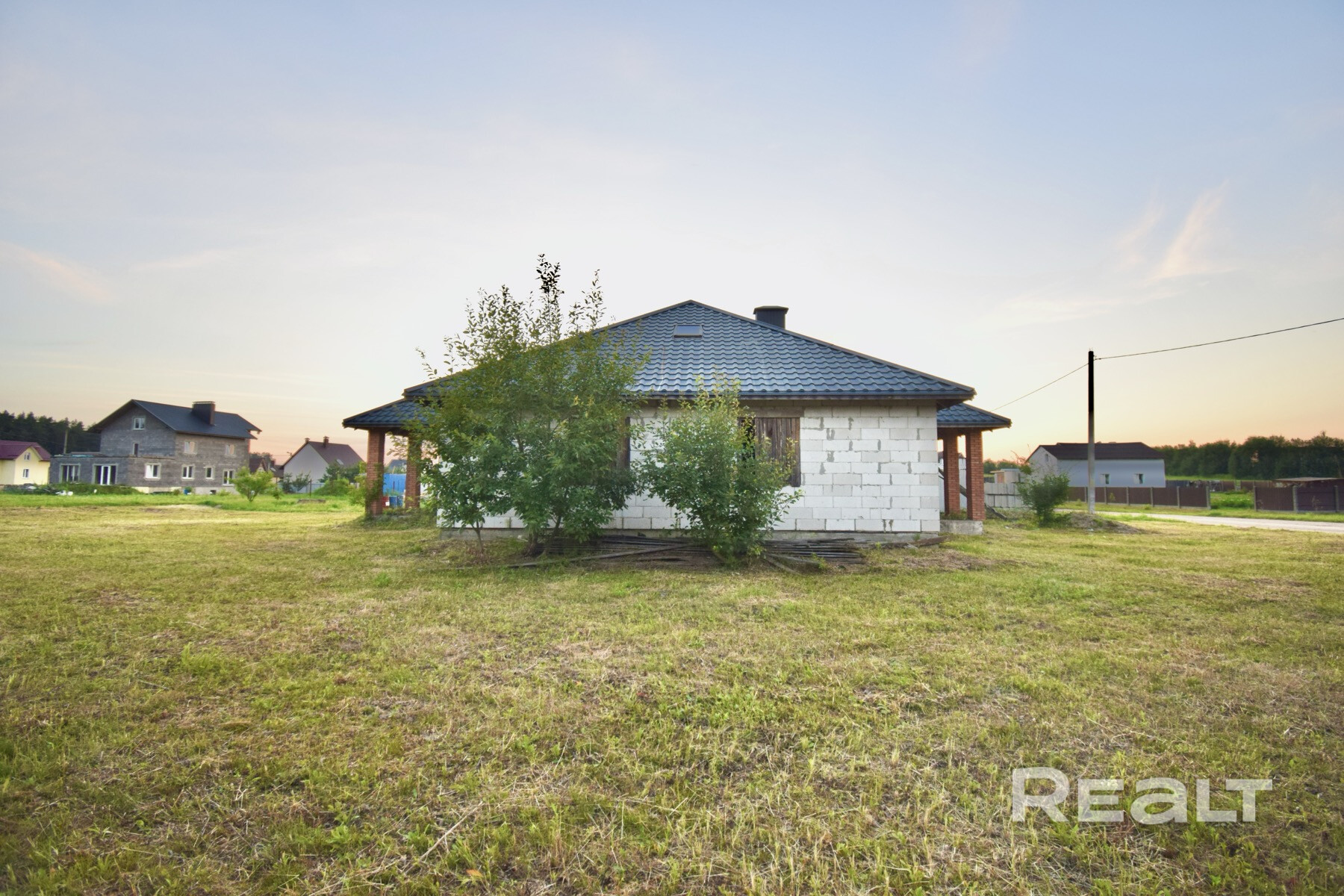 Дом (незавершенное капитальное строение) площадью 230м2 одноэтажный, полностью возведены стены (силикатные блоки), крыша накрыта металлочерепицей, отсыпан песчаный пол, сохранены строительные материалы.