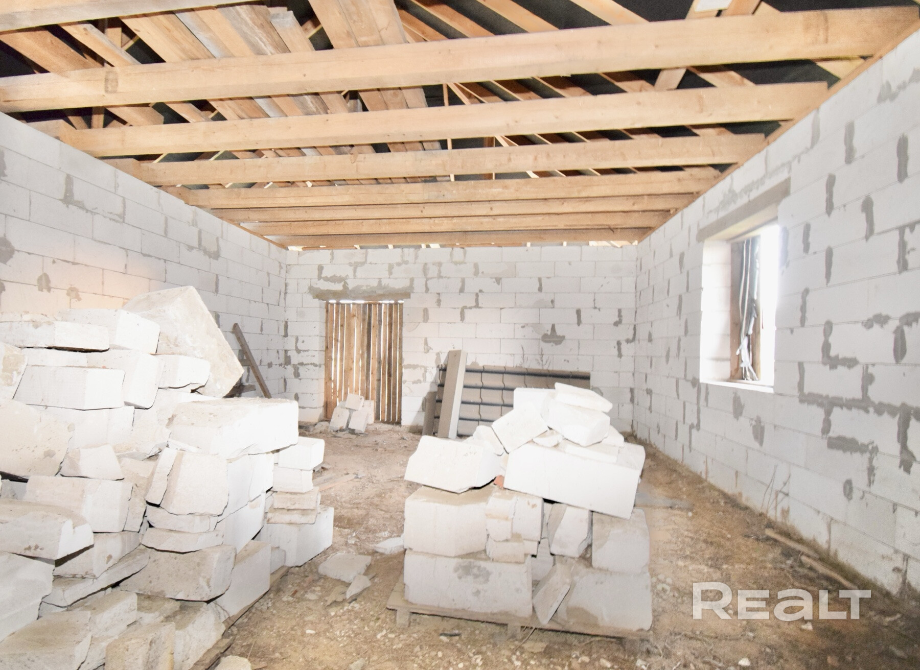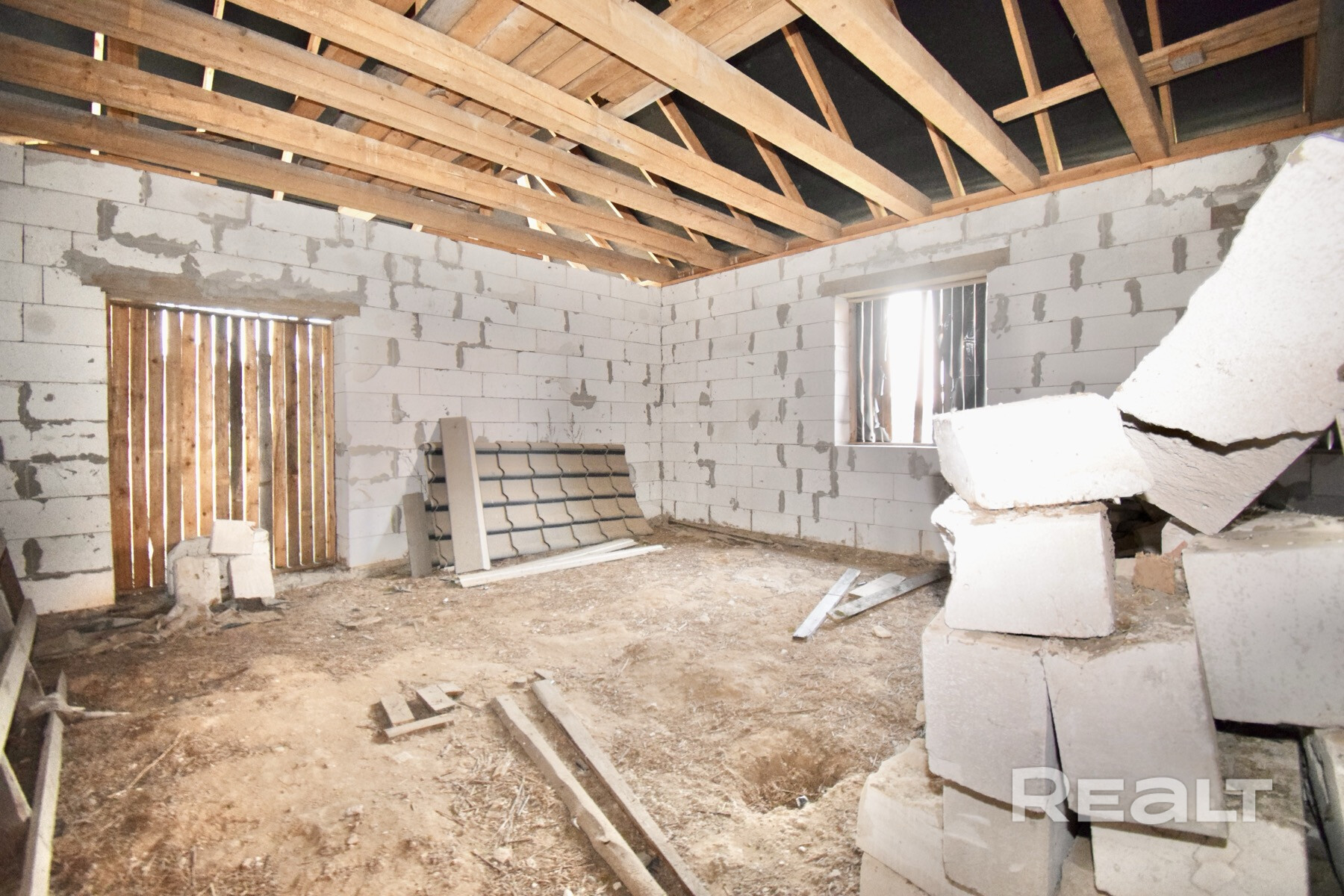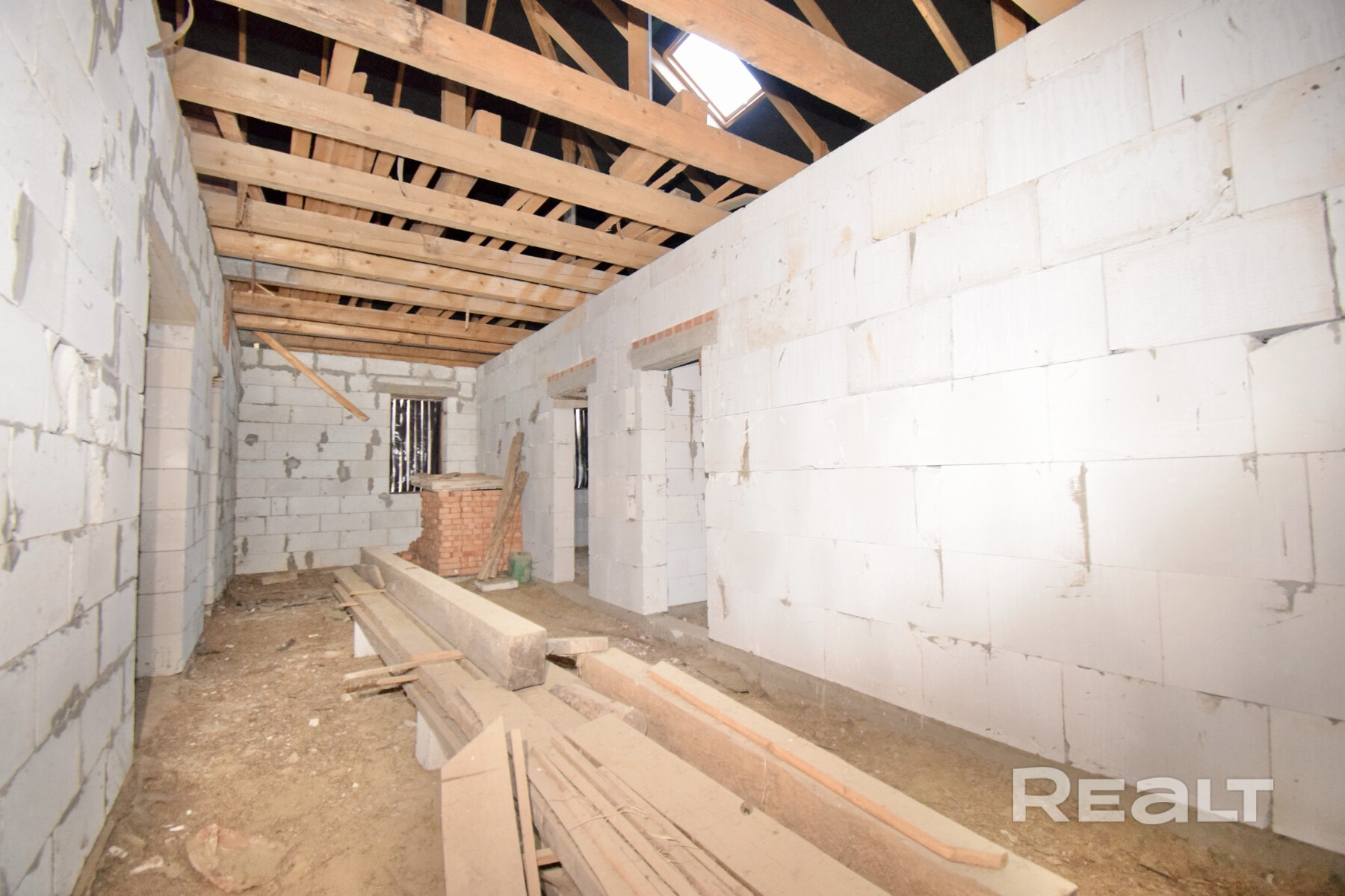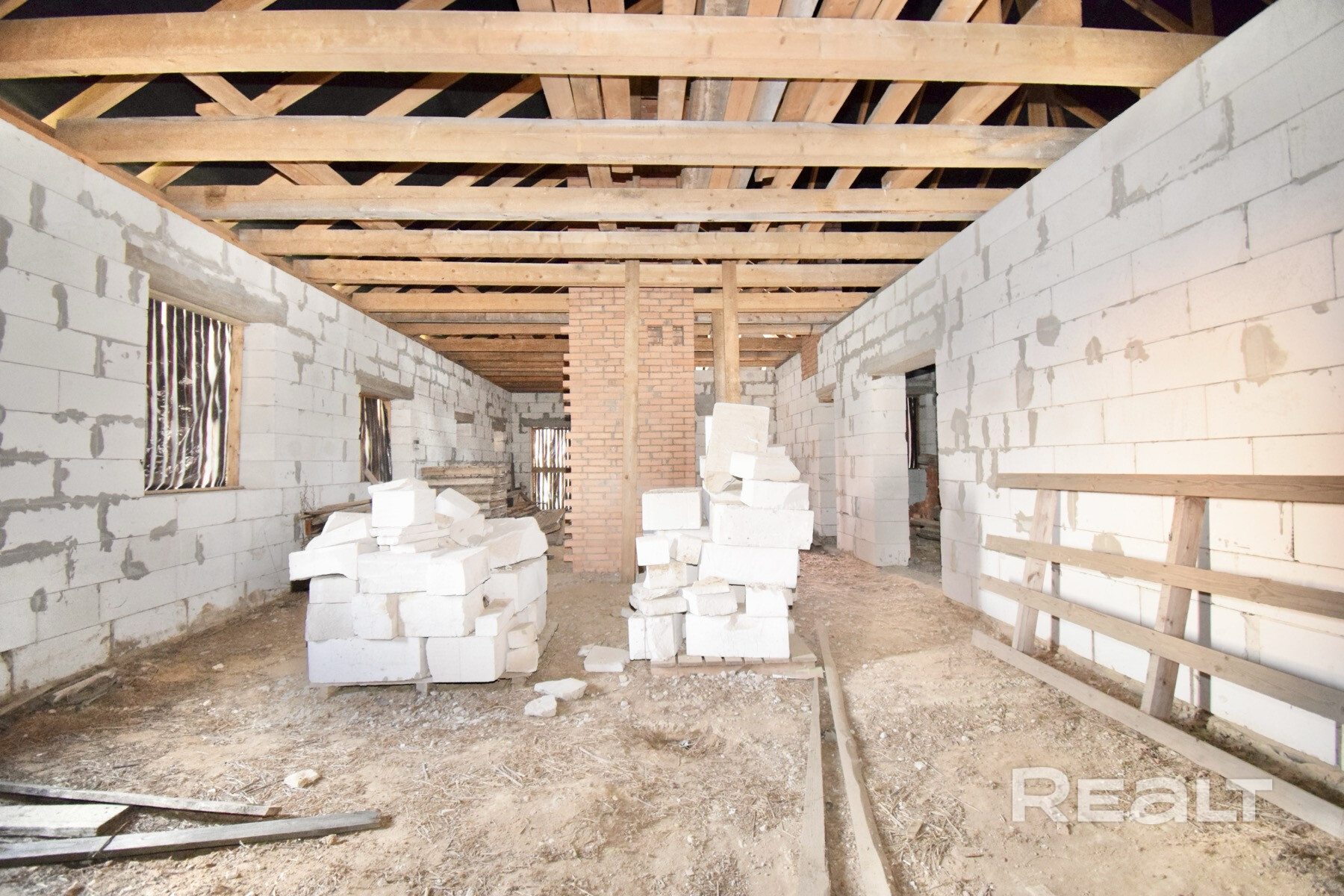 Дом (незавершенное капитальное строение) площадью 230м2 одноэтажный, полностью возведены стены (силикатные блоки), крыша накрыта металлочерепицей, отсыпан песчаный пол, сохранены строительные материалы.