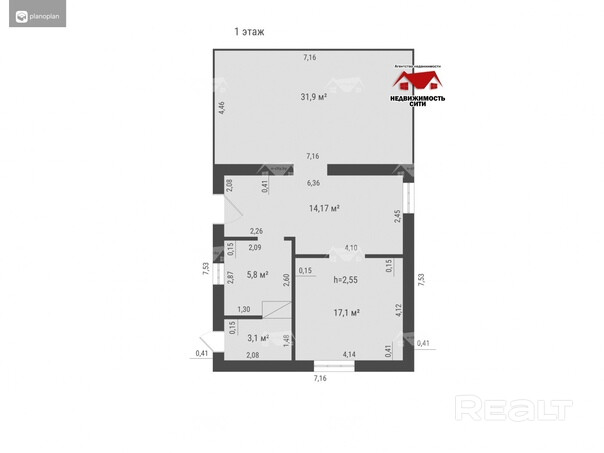 17.1 м²