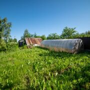 На участке растут плодовые деревья и ягодные кустарники (яблони, сливы, крыжовник, малина, ежевика, смородина), березы, ели, каштан.