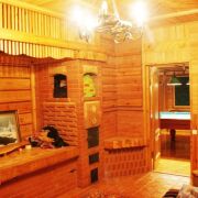 Отопление дома происходит природным газом. В качестве дополнительного отопления предусмотрен твердотопливный котел, а также три русских печи. Комнаты с половым покрытием из паркета.