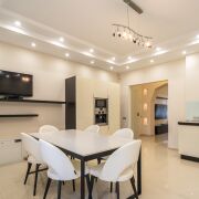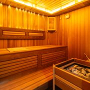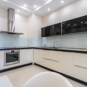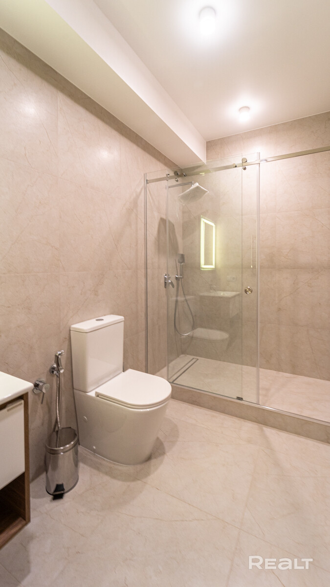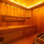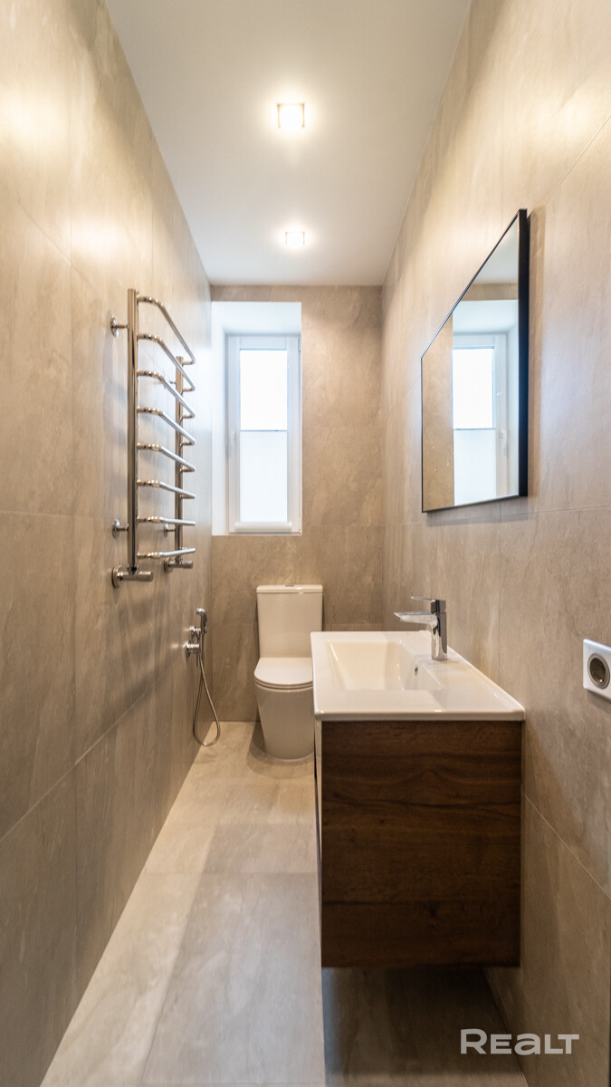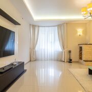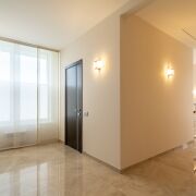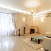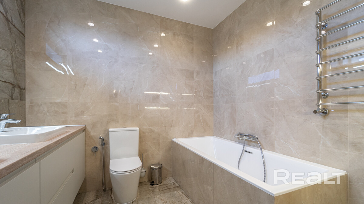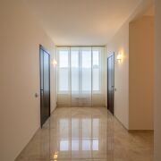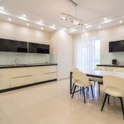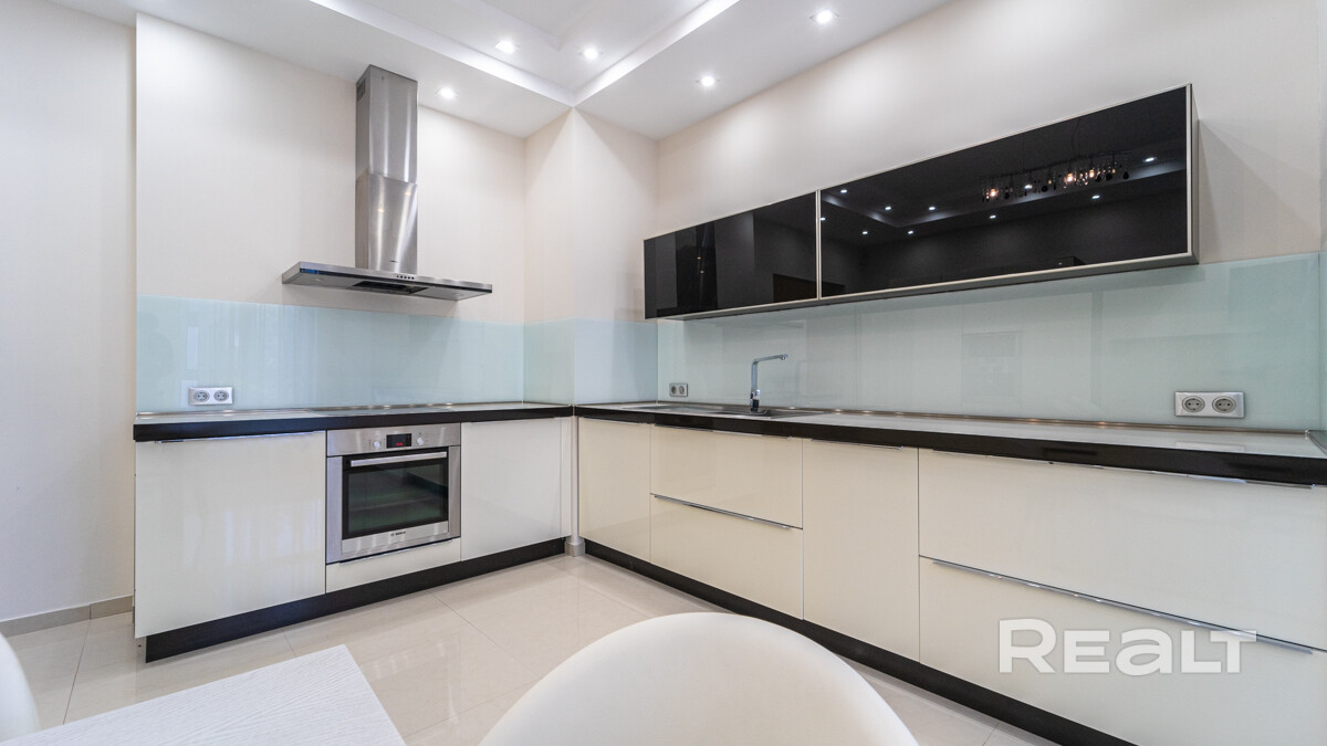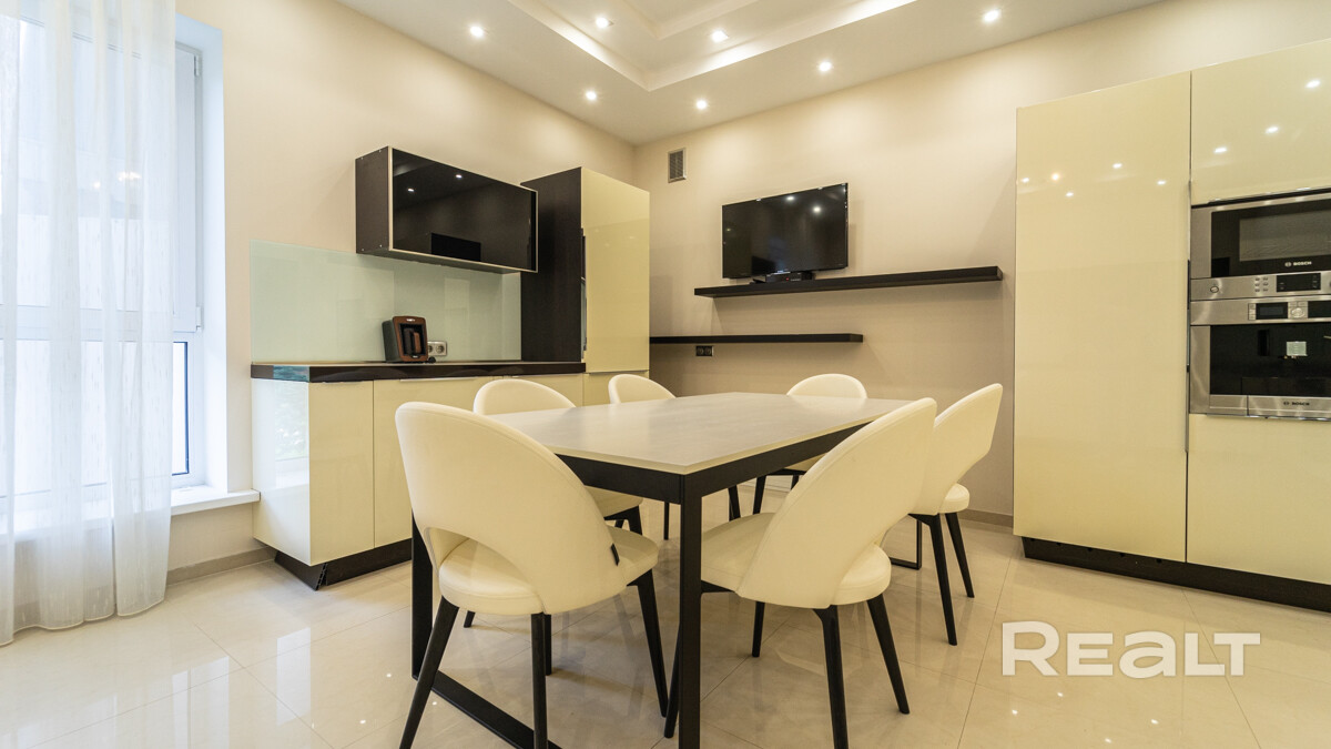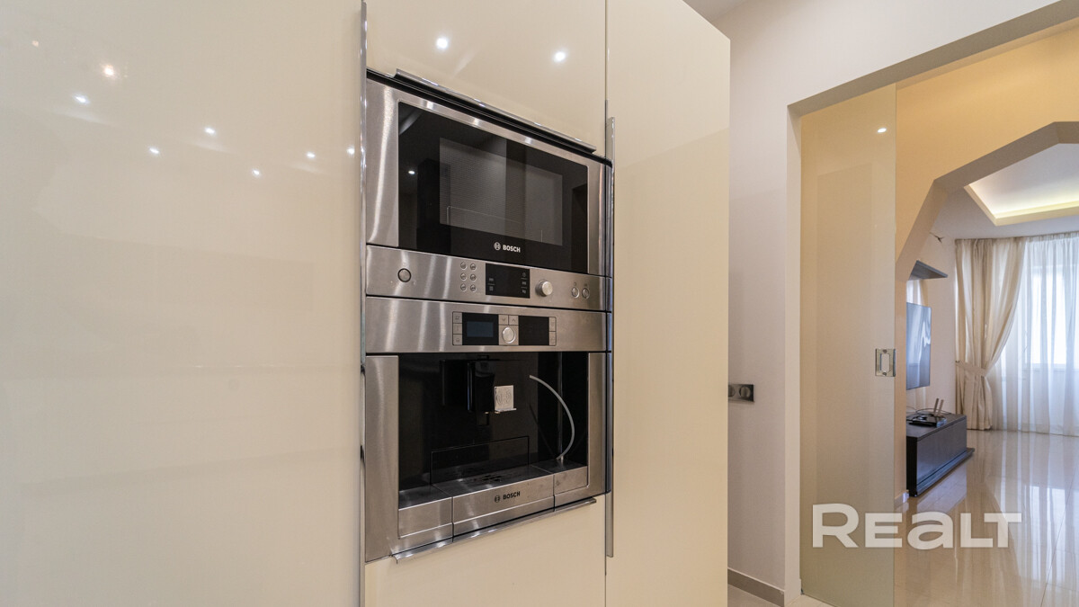 На первом этаже расположены кухня (24,6м2): кухонный гарнитур со встроенной техникой(духовой шкаф, индукционная плита, вытяжка, посудомоечная машина, свч печь и кофемашина, морозильник и холодильник) производства Германия- Liebherr, Bosch), просторная гостиная (26,8м2), оборудованная камином и кондиционером, полностью оборудованная сауна (сама парная3,8м2 +комната отдыха 9,3м2 +душ + туалет) санузел, топочная. Высота потолков на первом этаже-2,85