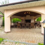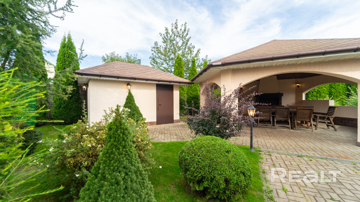 На участке распложена беседка 37м2 из г/с блоком с мангальной зоной и сарай 12м2. Выполнен ландшафтный дизайн с системой автополива и освещением.