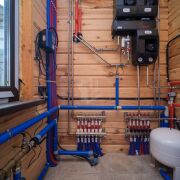 Отопление - предусмотрено несколько сценариев. Твердотопливный котел (установлен в отдельно стоящей котельной), электрокотел с возможностью дистанционного управления. Красивая печь с камином и встроенной духовкой. На первом этаже под керамогранитом водяной теплый пол с регулируемыми гребенками и зонированием. Теплые полы выполнены цельными трубами из сшитого полиэтилена на утеплителе толщиной 150 мм из эструдированного полистирола с отражающим слоем. На обоих этажах установлены радиаторы.