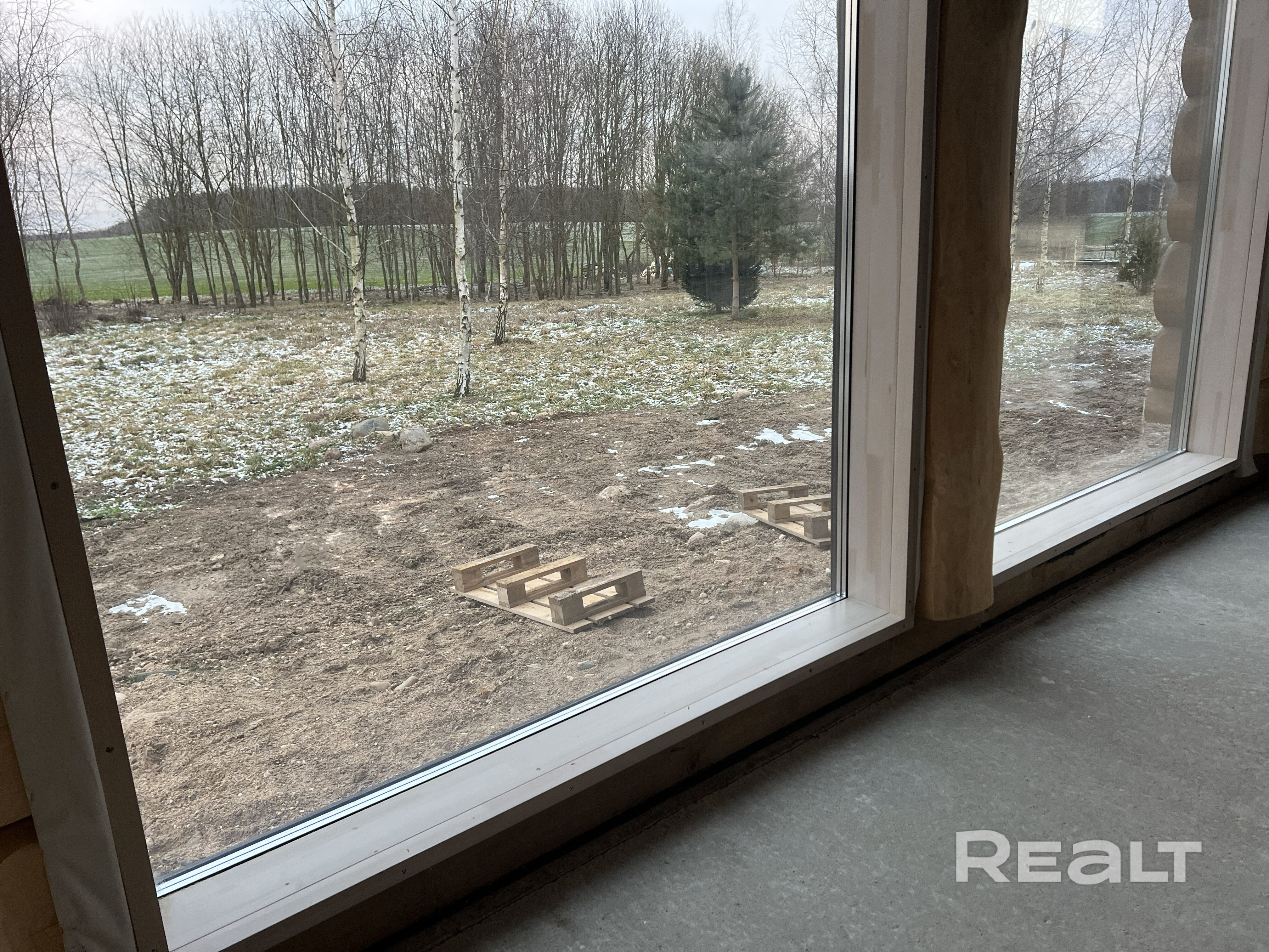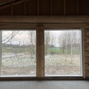 Новый деревянный дом с панорамными видами на лес и поле