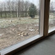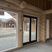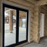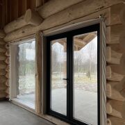 - Окна и двери деревянные производства Crown .Все выполнено в заводской обсадной коробке из клеенного бруса окрашенного на производстве снаружи и внутри .Есть панорамные окна и двери в пол с выходом на террасу.