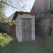 Санузел на улице сохраняет аутентичность загородной жизни, но при желании дом можно модернизировать под ваши запросы. Участок уже подготовлен к воплощению любых идей — от сада мечты до уютной зоны отдыха.