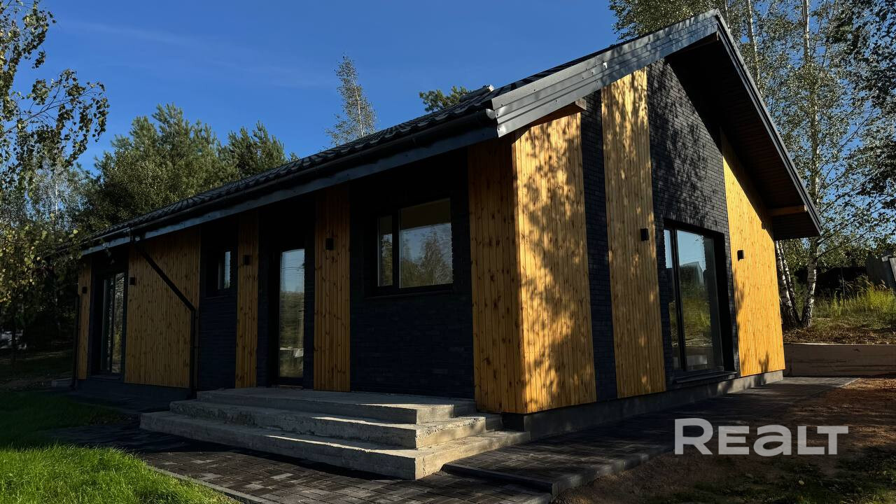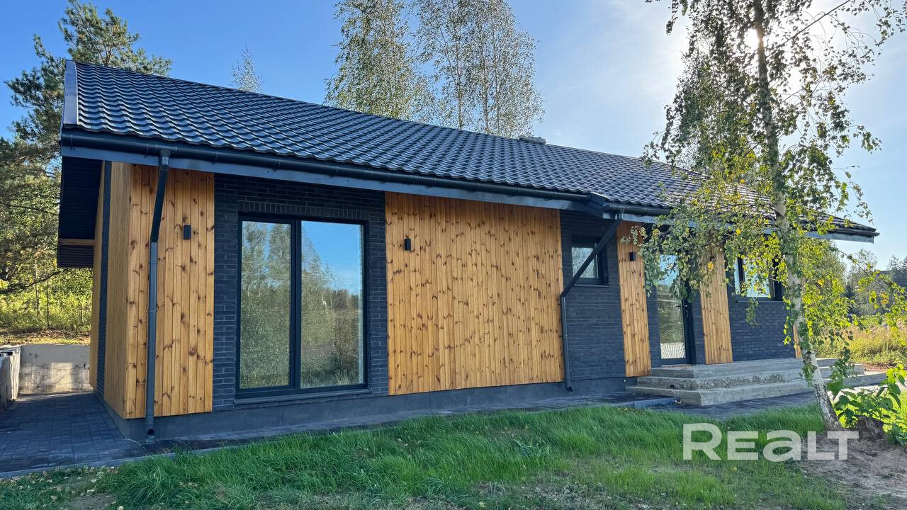 Продаётся стильный одноэтажный дом построенный современному проекту, площадью 100 м². Просторные панорамные окна наполняют дом светом и природой, создавая ощущение единства с окружающим пейзажем. Фундамент утеплённая плита Толстые стены из газоблока 400 мм + утепление. Отделка фасада клинкерным кирпичом и деревом. Окна: двухкамерные стеклопакеты с ламинацией. Крыша — металочерепица. В доме тепло и комфортно: тёплые полы + радиатор. Электричество, водоснабжение и канализация подключены.