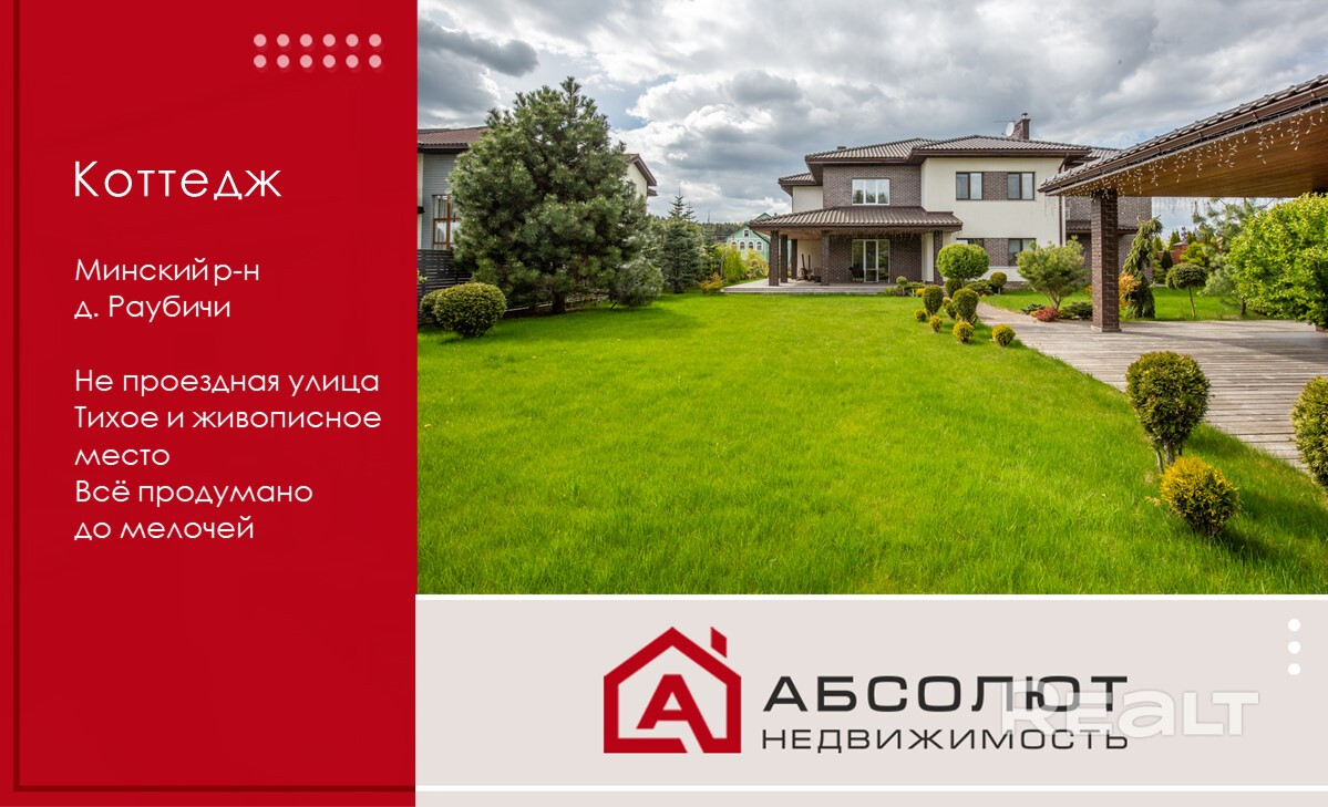 Продаётся отличный коттедж премиум-класса 100% готовности с мебелью в престижном коттеджном почёлке д. "Раубичи"; приглашаем на просмотр!