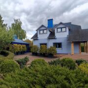 Участок 19 соток, выполнен ландшафтный дизайн с большим ассортиментом декоративных растений, огорожен со всех сторон забором, есть два заезда к дому и в каждом заезде есть парковочные места.
