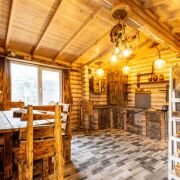 • Просторная беседка с зоной барбекю и качелями