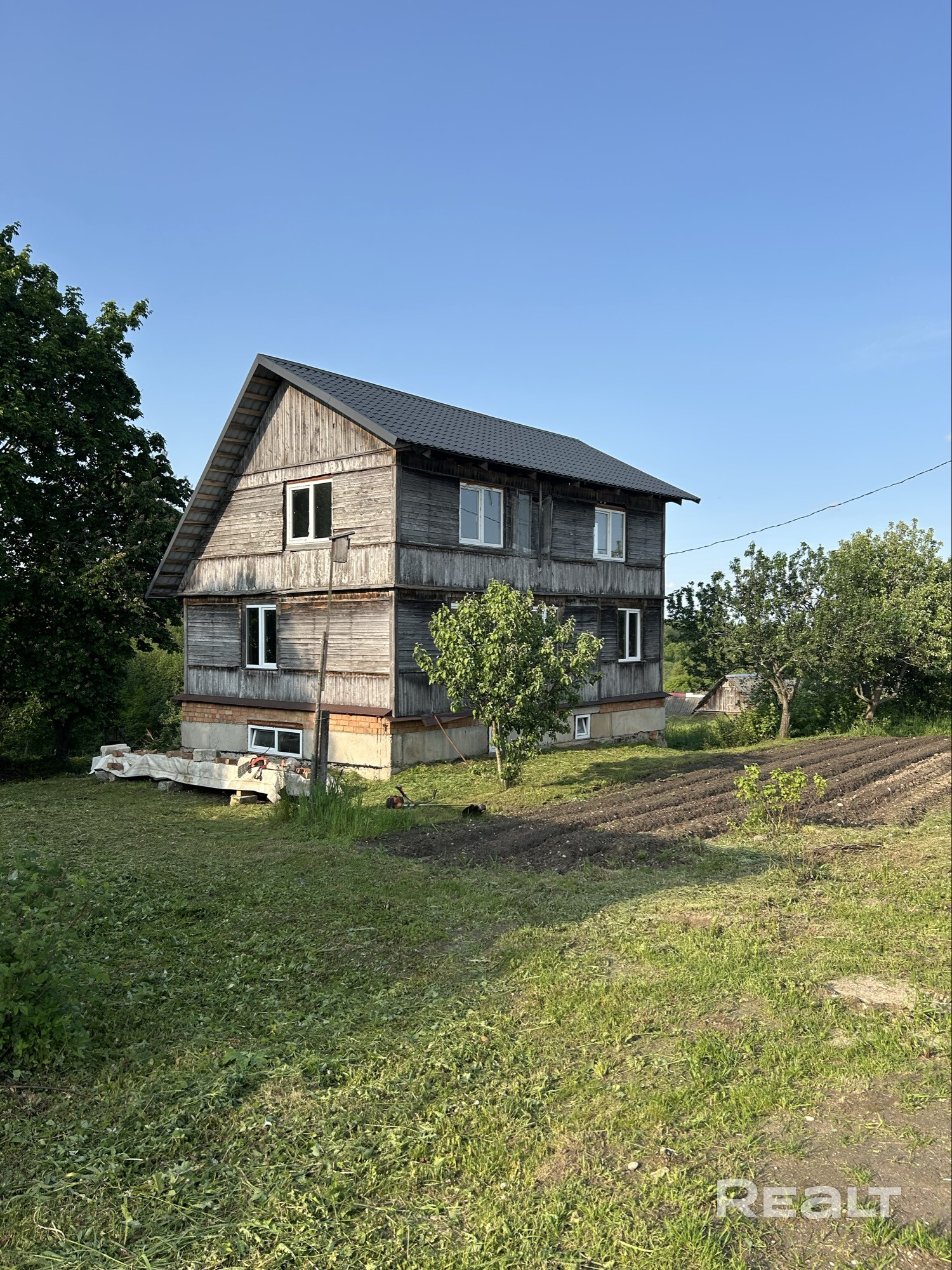 Продается дом (сруб, обшитый) в 40км от Минска. 2 этажа (жил. площадь 99,2м²) + гараж и подвальное помещение, 2009 года постройки. Без внутренней отделки, деревянный пол, есть камин и грубка с плитой. Обновлена кровля, установлены стеклопакеты. Участок почти 25 соток. По всем вопросам: можете звонить по указанному номеру телефона 10:00 – 20:00, преподчтительнее сообщения на сайте или WhatsApp, Viber. Разумный торг уместен