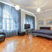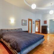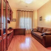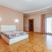 - На 2-ом этаже располагаются: спальни с King-size кроватями, рабочий кабинет с мебелью из дерева и кожаным диваном, 2 санузла, один из них с ванной, душевой кабиной и биде, гардеробные для удобного хранения одежды и обуви. Из жилой комнаты есть выход на балкон, откуда открывается красивый вид на зеленую зону, где Вы сможете наблюдать за красивыми закатами.